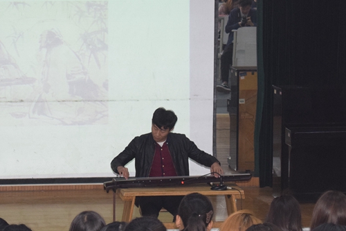 讲座以讲授和表演的方式进行。蔺学杰为同学们介绍了古琴的由来发展历史以及弹奏技巧,不仅让大家了解认识了古琴艺术,还带来优美的古琴曲,并与同学们互动使大家更快地融入到这古老的艺术中。活动现场,蔺学杰还对学习过古琴的同学进行了现场指导。