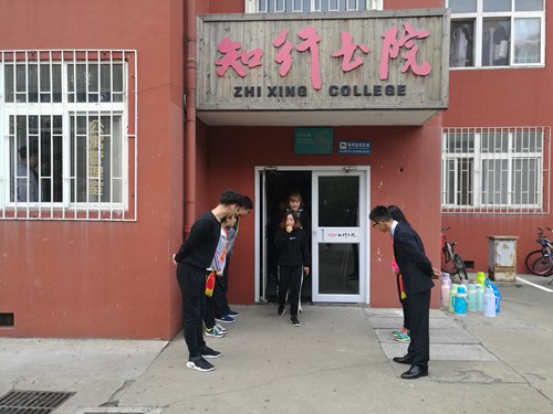 活动中,知行书院组织学生干部成立“文明礼仪监督岗”,每天早上8:00至8:30,中午13:30至14:00,在学院致用楼、闻道楼、知行书院门口站文明礼仪岗,引导同学们相互问好和打招呼,检查并督促改正不文明行为。