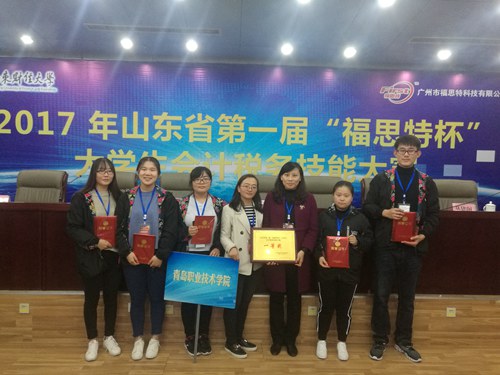 10月26日至27日,由山东省教育厅高教处主办、山东财经大学承办的山东省第一届“福思特杯”大学生会计税务技能大赛在济南举行,我院商学院会计专业韩澍、朱传霞两位指导教师率领张颖等五名同学组成的参赛队参赛,经过师生的共同努力,最终夺得本届大赛高职组比赛一等奖,并同时获得优秀组织奖。