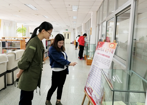 为纪念中国共产党成立96周年,庆祝党的十九大胜利召开,近日,图书馆、信息技术中心党支部在图书馆二楼中厅举办“马上学习,圆梦中国”庆祝十九大专题图书阅读等系列活动,此次活动通过大屏幕现场直播十九大召开的盛况,同时为学院师生推荐了《习近平谈治国理政》《社会主义核心价值观》《中国道路》《中国梦与中国精神》《五大发展理念与小康社会》《一带一路倡议》等系列主题图书。