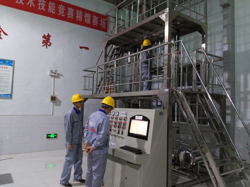 我院参赛选手在进行精馏比赛