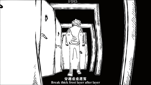 动画短片作品《对门,那么远》时长6分7秒,采取二维软件与三维软件结合的制作手法,制作历时一年半,制作期间动漫专业的学生也参与其中。短片取材于对门这个既熟悉又陌生的概念,借助对门间存在的已被淡漠的关系,主人公在走向对门的路上遇到重重险阻,克服内心的犹豫与顾虑,与对门相识。短片以黑白色为主调,运用超现实主义动画创作的手法,阐述主题。