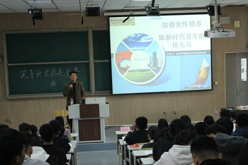 讲座中,优秀退伍士兵党员代表刘峻雨首先发言,他生动地描述了自己入伍经历,并把在部队上学习到的箴言分享给同学们,鼓励同学们在大学生活中不畏艰难,努力拼搏。随后,优秀学生干部代表房思宇以“天下兴亡,匹夫有责”为主题作了演讲,幽默风趣地阐述了个人与大国的密切联系。最后,孙显录作题为《加强党性修养做新时代青年的排头兵》的讲座。他结合党的十九大精神详尽地讲解了党性修养的定义以及如何加强自身的党性修养,同时还结合学生在学习、生活中出现的问题,提出了5个发挥党员模范作用的具体要求,令同学们深思。