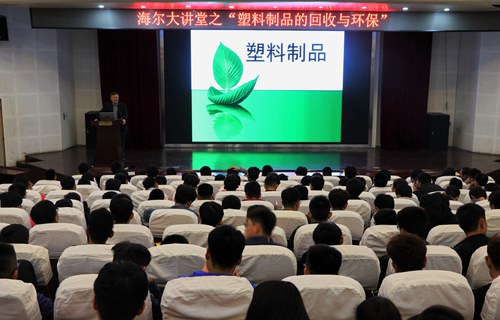 11月13日晚,海尔大讲堂之《塑料制品的回收与环保》讲座在艺术厅举行。本次讲座由海尔学院韩先征教授主讲,海尔学院2017级全体学生参加。