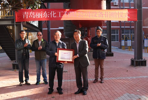此次设备捐赠活动是生物与化工学院校企共建化工馆的主要举措。青岛丽东化工共捐赠螺杆冰机等16件大型化工设备,原值500余万元,且前期已对捐赠的设备进行专门的防腐处理,后续还将提供设备的结构图纸供学院制作成集展藏实训教学于一体的二维码信息,以方便师生使用。
