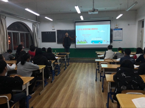 为提高大学生安全意识,防止实习求职受骗情况发生,近日,知行书院2017级全体同学在各班固定教室参加大学生求职防骗主题班会。