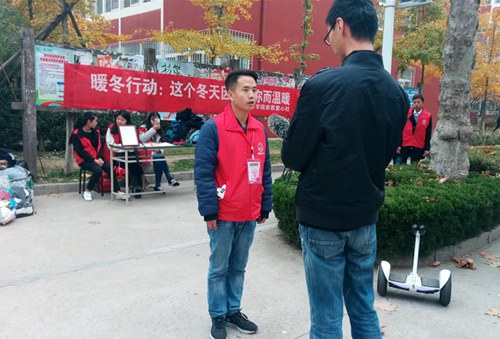 11月14日,崧霖爱心社在校园网发出《2017暖冬行动——关于为贫困地区捐赠过冬衣物的倡议书》,号召全院师生为青海省贫困地区学校捐赠过冬衣物奉献爱心,并在校园内和青之爱公益超市设置了两处捐赠点。自活动开展以来,得到了全院师生的积极响应,一时间,前来捐赠的师生络绎不绝,3天时间共募集过冬衣物1056件。募集的全部衣物将在黄岛区民政局和黄岛电视台帮助下,通过中国邮政发往青海、甘肃陇南三仓乡。