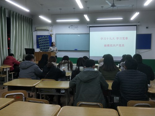 讲座开始前,两名同学交流了十九大精神学习情况及思想体会。随后,李明杰进行讲解,她围绕十九大题目、主题、13个组成部分进行了讲解,重点讲解了新时代中国共产党的历史使命、新时代中国特色社会主义思想和基本方略、贯彻新理念建设现代化经济体系、健全人民当家做主制度体系、发展社会主义民主政治、坚定文化自信以及推动社会主义文化繁荣昌盛等方面内容。之后,李明杰介绍了《中国共产党章程》十大修改之处,最后,她向学生党员布置了十九大精神、《党章》的深入学习以及“奉献日活动”任务,要求学生党员结合自己的实际情况,每个月开展志愿服务活动,培养全心全意为人民服务的精神和服务能力。通过此次宣讲活动,使学生党员更加深入地理解了党的十九大精神,强化了学生党员们的政治意识和奉献意识。