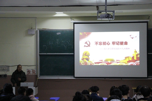 12月14日,商学院在闻道楼举办了“不忘初心,牢记使命”党的十九大精神宣讲讲座。讲座由学院学习宣传贯彻党的十九大精神宣讲团成员、纪委办副主任郎青春主讲,近400名学生参加了此次讲座。