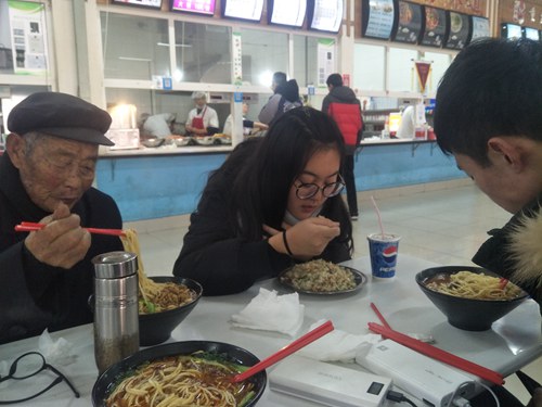 老人对学校餐厅美食赞不绝口