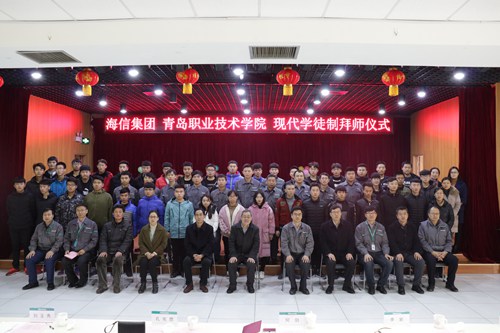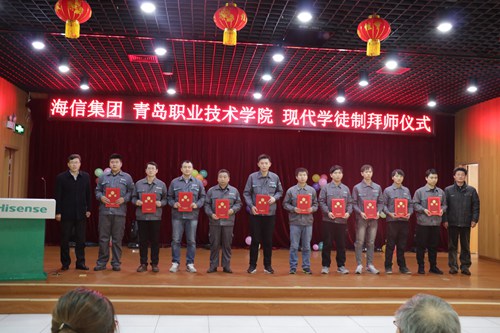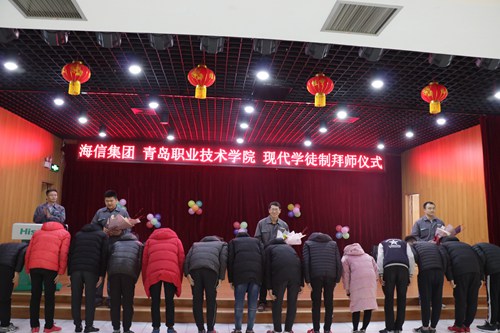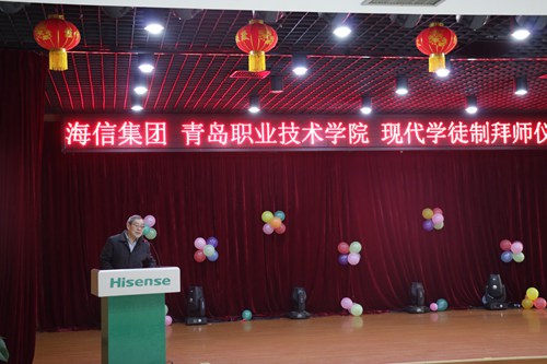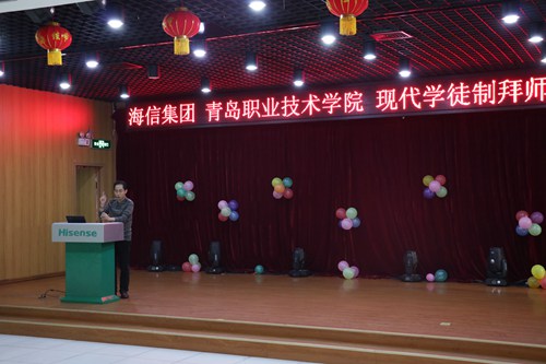 学院与海信集团于2005年合作成立“海信班”。双方在紧密合作、频繁互动的基础上,又于2017年先后成功申报青岛市、山东省现代学徒制项目。此次拜师仪式,标志着学院应用电子技术专业以现代学徒制为标志的新型人才培养模式正式启动,校企合作进入更加紧密、务实的新阶段。
