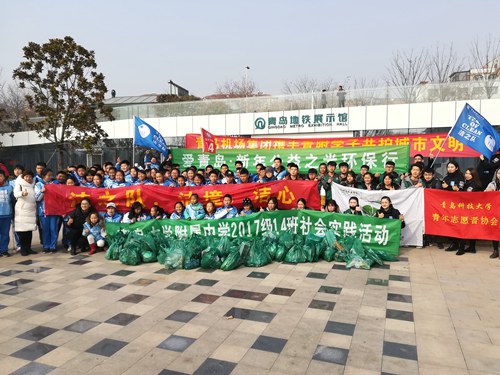 1月3日,知行书院绿喇叭环境保护宣讲团应邀参加由青岛市环保组织——洁之队主办的“爱青岛——新年公益之光环保行”活动,参加此次活动的有青岛科技大学、青岛大学附属中学学生及青岛机场集团的志愿者。