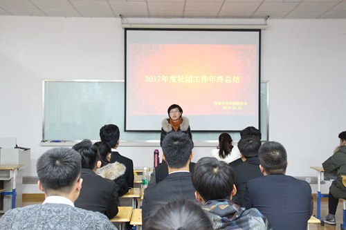 1月5日下午,海尔学院召开2017年度社团工作总结交流会,海尔学院30个学生社团负责人进行2017年度工作述职,开展社团交流活动。海尔学院党总支书记费晓玉及相关负责教师参加会议并进行现场点评。
