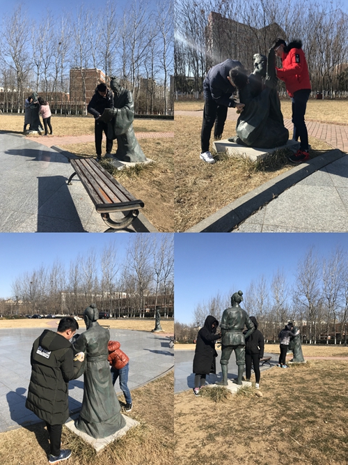 1月10日,信息学院计算机应用技术2016级1班全体同学在校园内开展了校园雕像清洁社会实践活动。