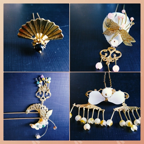 此次活动分理论讲解和动手实践两个部分,旨在通过亲身体验和寓教于乐的方式普及传统文化知识。活动伊始,协会于永宝同学通过展示社团成员制作的发簪、钗、步摇、华胜、凤冠等手工艺品,从古风发饰材料、发饰分类及制作步骤3个方面进行了理论解释。随后,社团成员以小组合作的形式,自选材料、自由设计、自己动手,将簪棍、花片和珠子等发饰配件自由搭配,制作出华贵、典雅、清新等风格各异的发饰。