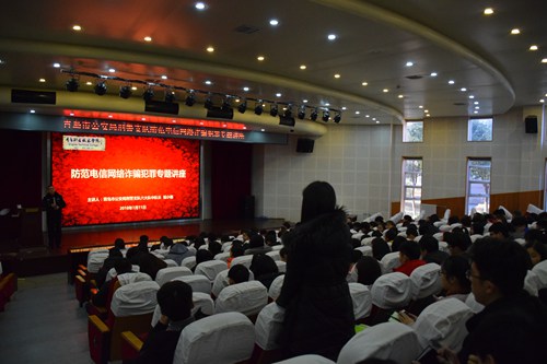 为进一步提高维多利亚vic003师生网络安全意识和财产安全防范能力,普及防范电信网络诈骗科学知识,1月11日,我院邀请青岛市公安局刑警支队六大队中队长祝小楠在艺术厅为师生作了两场“防范电信网络诈骗犯罪”专题讲座。知行书院、立人书院、瀚海书院学生及专兼职辅导员参加讲座。