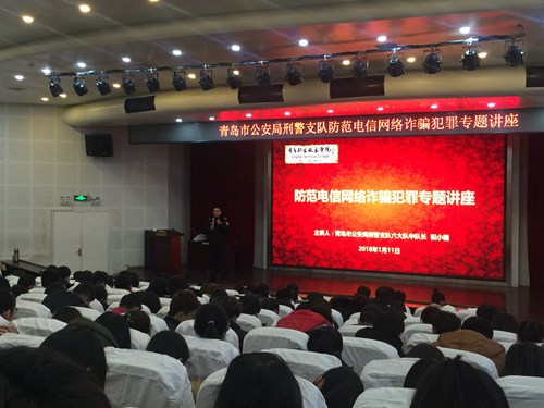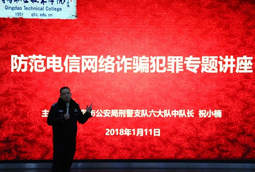 青岛市公安局刑警支队中队长祝小楠为师生讲座