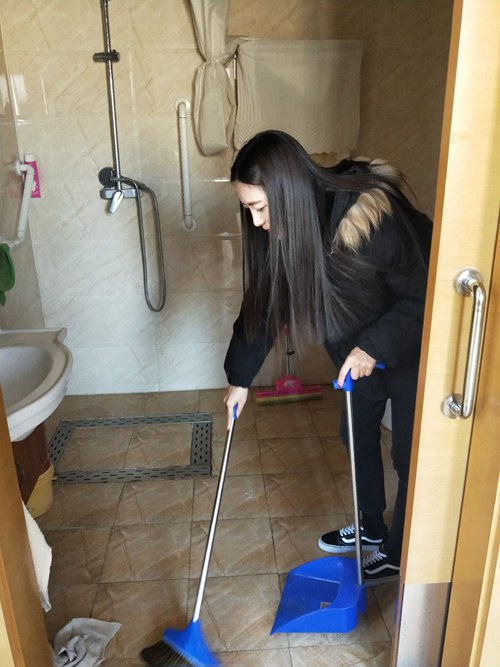 志愿者们一早步行来到中康养老院,受到院方和老人们热情欢迎。不一会儿志愿者们就和这里的老人们熟悉起来,敬老院里充满了欢声笑语。志愿者们和老人们唠着家常,倾听他们讲述自己年轻时候的经历,聊得不亦乐乎。随后,志愿者们又为老人们擦桌子、拖地和擦玻璃,把宿舍卫生打扫得干干净净。一上午的劳动让志愿者收获满满。