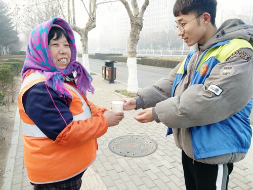 1月20日,由院学生会16名学生骨干组成的“社区1+1”社会实践志愿者团队开展了“温暖环卫工,寒冬送温情”志愿服务活动。