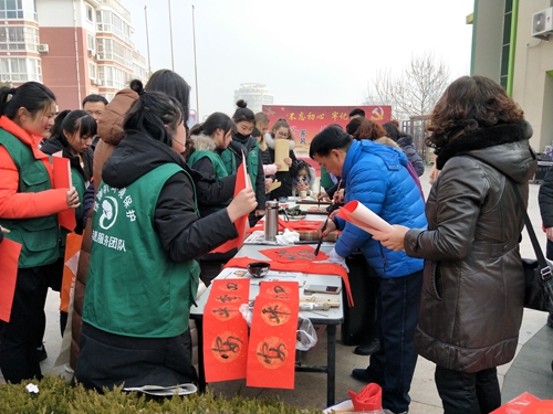 活动当天,志愿者们早早来到社区布置现场,张贴事先准备好的宣传海报,为书法家准备好毛笔等用具。活动吸引了许多社区居民甚至外国友人的参与。志愿们发放自己精心制作的家风家训名言贺卡,引导社区居民观看家风家训宣传展板,协助书法家发放手写春联。活动中,邵凯与裕阳公益负责人宋龙港交流、沟通了工作。宋龙港对知行书院学生积极投身志愿服务的精神和行动给予高度评价。邵凯感谢裕阳公益为学生志愿服务提供的机会,希望双方加强合作,并向裕阳公益赠送锦旗一面。
