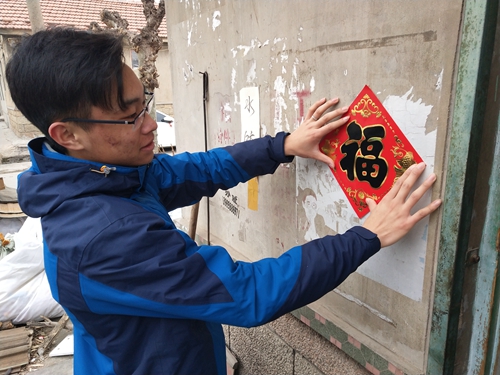 活动中,志愿者们带着事先准备好的“福”字和新年对联,探访村里的空巢老人、孤寡老人。在老人家中,志愿者们帮老人做力所能及的家务,陪老人一起唠嗑拉家常,听老人讲有关“腊八节”的来历和风俗。在寒冷的冬日为老人们送去了新春祝福和爱心关怀。
