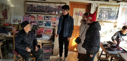 社会实践团队队员与木板年画传承人杨洛书交谈