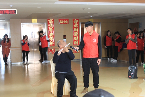 26日,志愿者前往中康颐养敬老院开展送温暖活动。志愿者们根据兴趣爱好、专业特长为老人们准备了一场精彩的演出。开场舞《踩踩踩》、街舞表演、手语舞表演、《父亲》等文艺表演让老人们十分高兴。老人代表也给大家带了长笛表演。表演结束以后,志愿者们分组陪老人来到房间里,帮助老人整理床铺、打扫卫生、陪老人聊天。