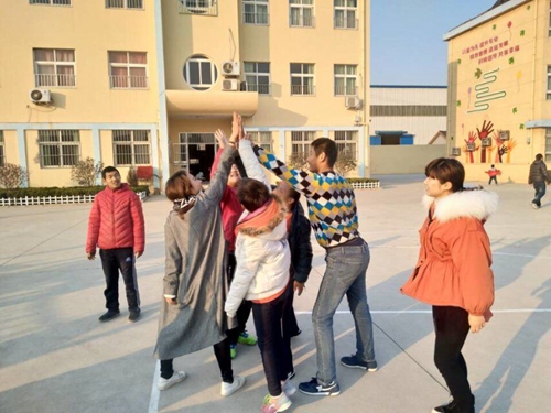 志愿者与孩子们做游戏
