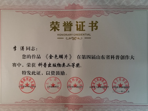 教师李涛获科普文学类二等奖