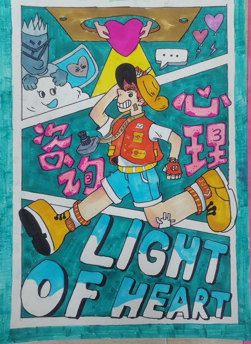 活动融入艺术专业特长,贴近校园生活实际,围绕主题开展了“赏影片,净心灵,悟人生”电影赏析、“以画绘心,洞见未来”心灵画报、“拥抱阳光心态,做最好的自己”主题班会、“Shine青春,Show寝室”集体照四项活动。在电影赏析活动中,学生通过观看影片,品悟其中的道理,执笔抒发胸臆,书写心中之感,传递心声和青春能量;在心灵画报活动中,学生用画笔勾勒出心中所思,用色彩表达对未来的憧憬与向往;在主题班会活动中,学生放松身心,释放压力,营造了班级友爱凝聚氛围;在趣味集体照活动中,学生用镜头留下生活的美好瞬间和点滴乐趣,提高彼此的默契,增进彼此的距离。