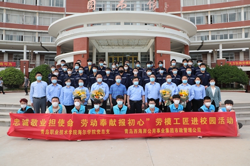 5月25日,海尔学院党总支与青岛西海岸公用事业集团市政管理有限公司党委联合开展“劳模工匠进校园”系列活动。齐鲁最美环卫职工王向先、青岛市劳动模范李巧、青岛市最美退役军人朱长敬、青岛西海岸新区最美公用事业人余世华来校举办报告会,并与师生开展座谈会及技能展示交流活动。