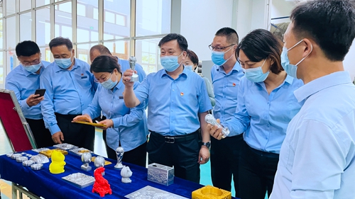 报告会结束后,“劳模工匠进校园”师生座谈会在海尔中央空调实训基地举行。劳模工匠代表与海尔学院振超班师生开展座谈交流。振超班学生代表畅谈了聆听劳模工匠报告会的感想感悟,表达了对劳模工匠的尊重和敬仰,表示要以实际行动践行劳模工匠精神,刻苦学习,提高本领,努力成为新时代的建设者和民族复兴的践行者。随后大家针对自己感兴趣的问题与劳模工匠开展面对面交流。在综合实训楼前,李巧、朱长敬两位劳模工匠向海尔学院师生展示了绿植修剪技术,海尔学院青年志愿者大队的队员们也操刀上阵,体验了劳模工匠的日常工作。活动最后,一行人参观了海尔学院实训基地。