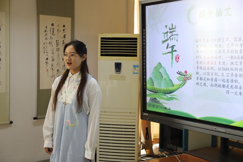 在宣讲环节,“青之印”志愿宣讲员结合传统节日风俗视频,开展非遗文化宣传普及,讲述贤士文人故事,吟诵端午文化诗词,分享交流青年学生对端午文化的创新传承以及对非遗文化的创新传播,共同感受蕴藏在民族血脉中生生不息的家国情怀。