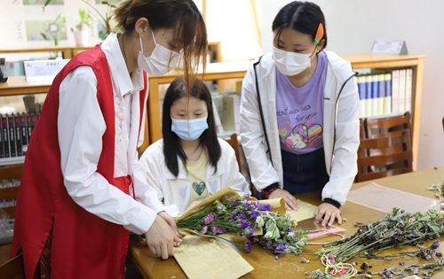在体验环节,师生仿佛置身浓情芬芳的端午文化游园会,纷纷体验着自己感兴趣的绘制活动。团扇压花活动中,师生根据扇面形状现场创意构思,选取压花花材和叶片和谐构图搭配,结合书法和彩绘点缀丰富扇面空间,通过色彩灵动的立体压花团扇传递青春活泼的节日氛围;在制作艾草花束活动中,志愿者一边向师生普及艾草实用功效,一边讲解挑选艾草数量及悬挂注意事项,通过把艾草、菖蒲叶与玫瑰、勿忘我、满天星、小雏菊等各种干花创意搭配,制作出一束束精美的艾草花束,大家将承载“艾”意的花束互赠师友传递节日安康的美好祝愿;主题剪纸活动中,体验者们通过线上习俗知识竞答、云上赛龙舟加深端午传统习俗认知,以端午文化元素和人文风俗情景为创作灵感,剪出一幅幅形象逼真、生动有趣的剪纸作品,纸绘端午,情随纸动,用一抹抹红色剪纸讲述文化传承故事。