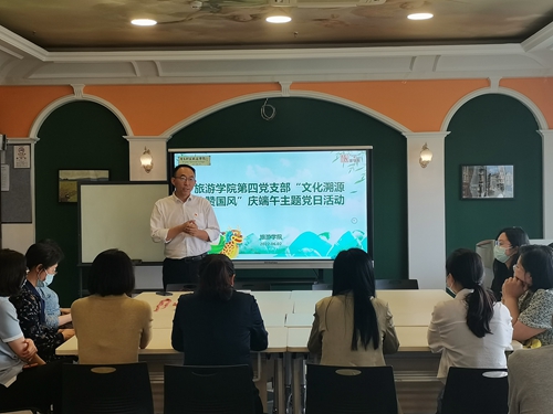 6月2日下午,旅游学院第四党支部在综合实训楼702教室举办了“文化溯源礼赞国风”庆端午主题党日活动。活动中,师生共同欣赏“诗语青旅”诗朗诵视频;党员教师李涛为师生作端午节知识科普讲座,讲述端午节的来历和习俗,并与大家分享了端午科学童谣创作,提高了师生对民族文化的认同感和自豪感。活动最后,师生齐动手体验端午民俗,缝制香囊和编制五彩绳,共同感受端午节的乐趣和美好,旅游学院党总支还为现场师生发放了端午节粽子,现场气氛轻松热烈,其乐融融。