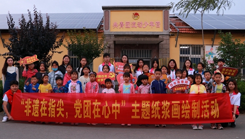 6月10日,艺术学院“艺智助梦,微爱课堂”志愿服务队赴张家楼街道庄家疃村“共青团流动少年宫”开展了“非遗在指尖,党团在心中”主题党史学习教育活动,让党团史知识学习与非遗纸浆画绘制巧妙融合,为乡村孩子们带来了富有意义又趣味十足的爱国主义学习体验课堂。