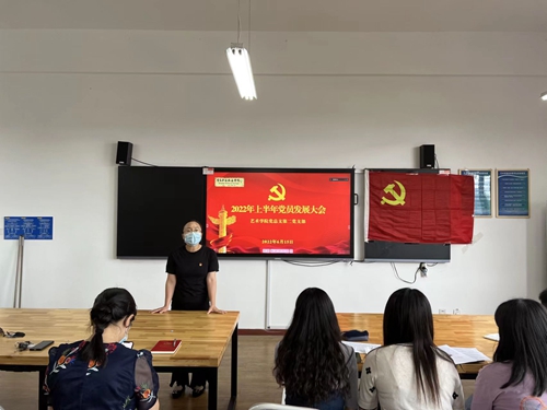 6月15日,艺术学院党总支第二党支部在创意实训楼C301召开2022上半年党员发展大会。艺术学院党总支副书记郭静、解荟霖、发展对象入党介绍人、学生支部所有党员教师、全体学生党员及发展对象参加大会。