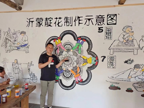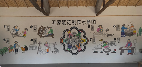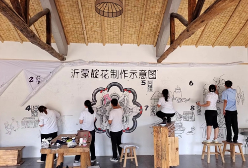 6月23日,应沂蒙红色文化产业有限公司邀请,艺术学院文化产业工作室王泽辉博士与沂南县马牧池乡乡长王效强签订了“筑梦沂蒙美丽乡村”合作协议书。签约后,王泽辉博士带领当地村民冒着酷暑现场传授指导墙画的绘制方法和染色技艺,首次推出常山庄古村非遗文化艺术长廊——“沂蒙靛花制作示意图”,得到相关领导的好评,成为沂蒙红色文化的打卡地。