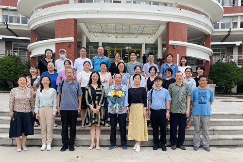 党委副书记、校工会主席邢广陆为吕建华教授送上祝福花束