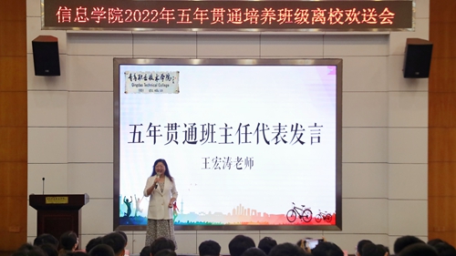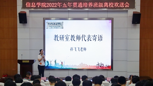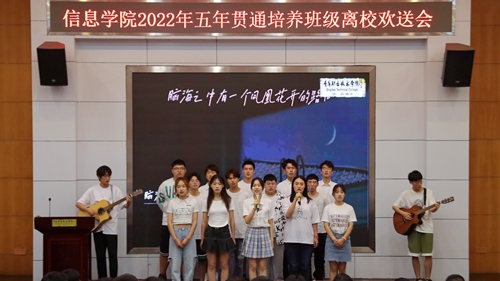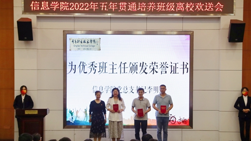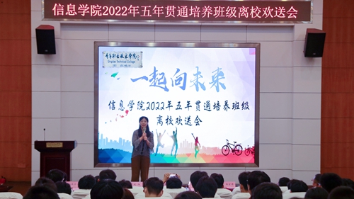 6月23日下午,信息学院在报告厅举办2022年五年贯通培养班级离校欢送会,信息学院党总支书记李明杰、党总支副书记李海民、五年贯通班级教师代表、五年贯通班级全体学生、信息学院师生代表参加了欢送会,会议由信息学院团总支书记孙玉宁主持。