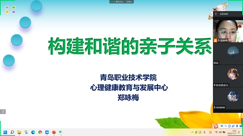 此次讲座由心理健康教育与发展中心教师郑咏梅主讲,采用腾讯会议的方式,内容涉及构建和谐亲子关系的重要性、基础、理念和方法等,采用案例分析、活动体验、心理测验、互动问答等方式进行,讲座期间学生家长积极参与,效果良好。