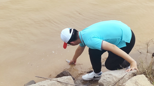 在利津县黄河外滩采取黄河水样