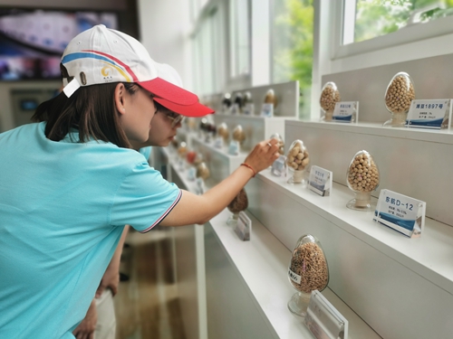 在黄河三角洲现代农业技术创新中心观察耐盐碱种子展示