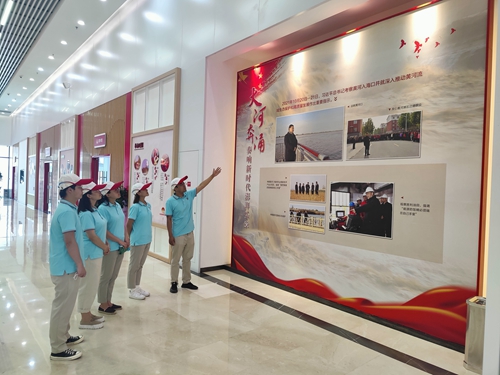 梳理黄河流域发展和治理脉络,探索黄河保护和发展的治理经验,领略母亲河的文化风采,感受黄河文化的博大精深,是此次团队考察调研的重点。在黄河入海口码头,讲解员动情地向团队成员回顾了习近平总书记凭栏远眺发出的感慨:“黄河入海流,真是辽阔啊!今天来到这里,黄河上中下游就都走到了,我心里也踏实了。”大家切实感受到总书记把保护黄河作为治国理政的大事来抓,倾注了大量心血。在黄河三角洲生态监测中心,团队成员通过巨型屏幕实时观看黄河的径流变迁、水沙变化和黄河三角洲生物多样性保护情况,直观感受到生态环境不断向好。
