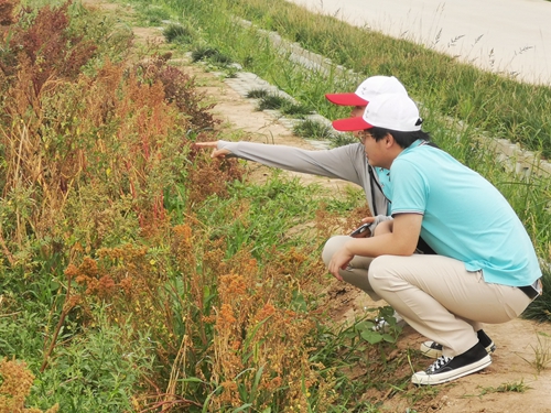 在盐碱地农业试验示范基地实地观察耐盐碱作物生长情况