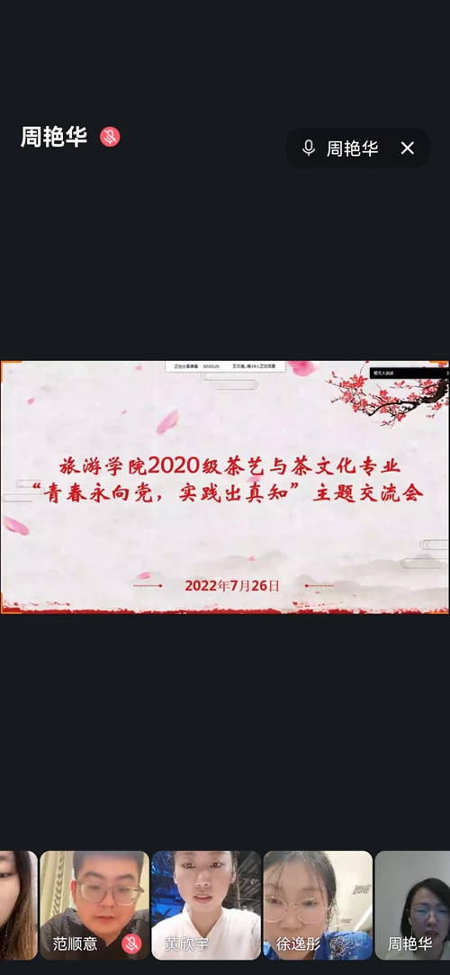 7月26日至8月4日,旅游学院茶艺与茶文化专业以线上会议的方式举行“青春永向党 实践出真知”交流会。