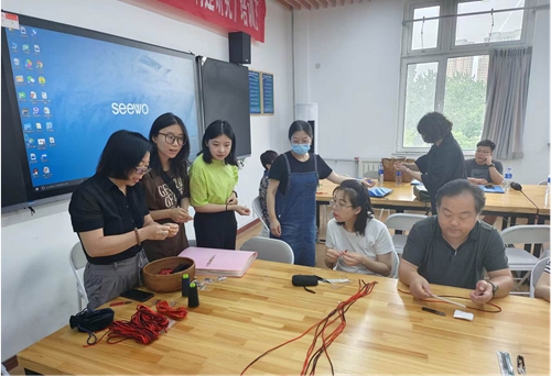 盘扣非遗传承人林瑞先带领大家做手工