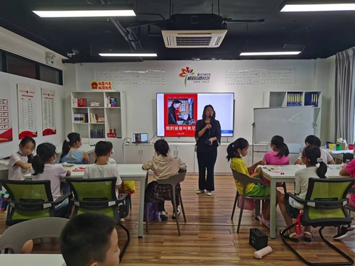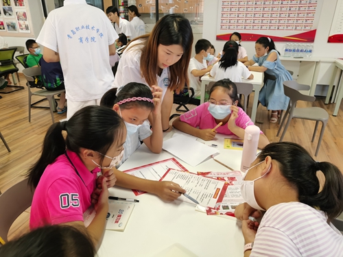 志愿者与小学生一起进行课堂活动