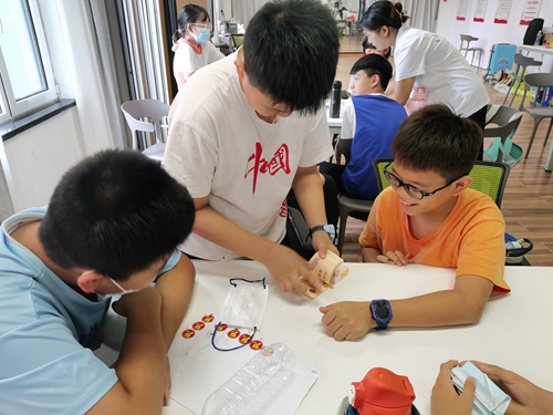 七彩假期话公益,拓展视野助成长。商学院联合长江路街道峨眉山路社区、峨眉山路小学共同开展为期10天的“七彩假期”欢乐公益托管营活动。七彩假期公益托管营共开设16门课程,涵盖了《红色·共和国的旗帜》《橙色·藏在小零食里的大安全》《黄色·舌尖上的美食》《绿色·瓶盖七色花》等传统特色“七彩假期”课程,并在志愿者主导的基础上,邀请峨眉山路小学教师结合自身学科教学优势,每天下午4点半为小营员们开设阅读指导与英语口语练习。在托管营中,志愿者们还结合各自专业背景设计了颇具商科专业特色的七彩课程。“我是安全小警察”“我是网红小达人”“我是理财小能手”“我是蓝天小卫士”“我是文化传承者”等特色公益课程,寓教于乐,在丰富小营员们课程体验、拓展视野的基础上,进一步引导少儿传承红色基因、了解新兴行业、增强职业体验、提高财商素养,帮助和引导更多的青少年儿童度过一个安全、快乐、有意义的假期。