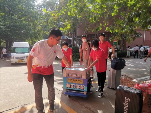 迎新现场,海尔学院党员先锋服务岗的学生党员们热情地引导新生办理报到手续,帮助新生运送行李、咨询领路,带领新生认识校园,充分展现了“一个岗,一群人,一条心”的凝聚力和战斗力,使新生全方位地感受到了来自学生党支部“热情、周到、便捷”的服务,党员先锋服务岗的身影成为校园里一道靓丽的“红色”风景线,为海尔学院迎新工作的顺利开展提供了保障。党员先锋服务岗的教师党员统一佩戴党员徽章,深入新生宿舍,与新生面对面交流,帮助新生解决初入大学在学习、生活和思想上遇到的困惑,与学生深入谈心,耐心解答学生提出来的各种问题。